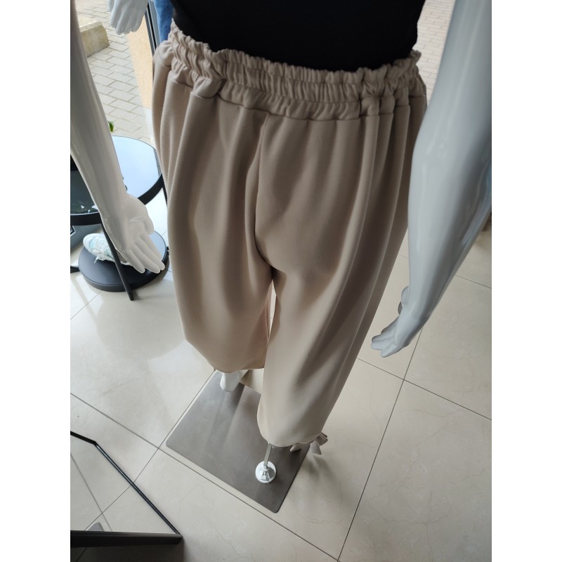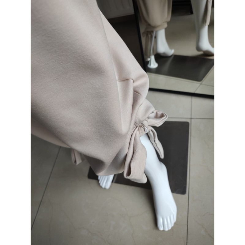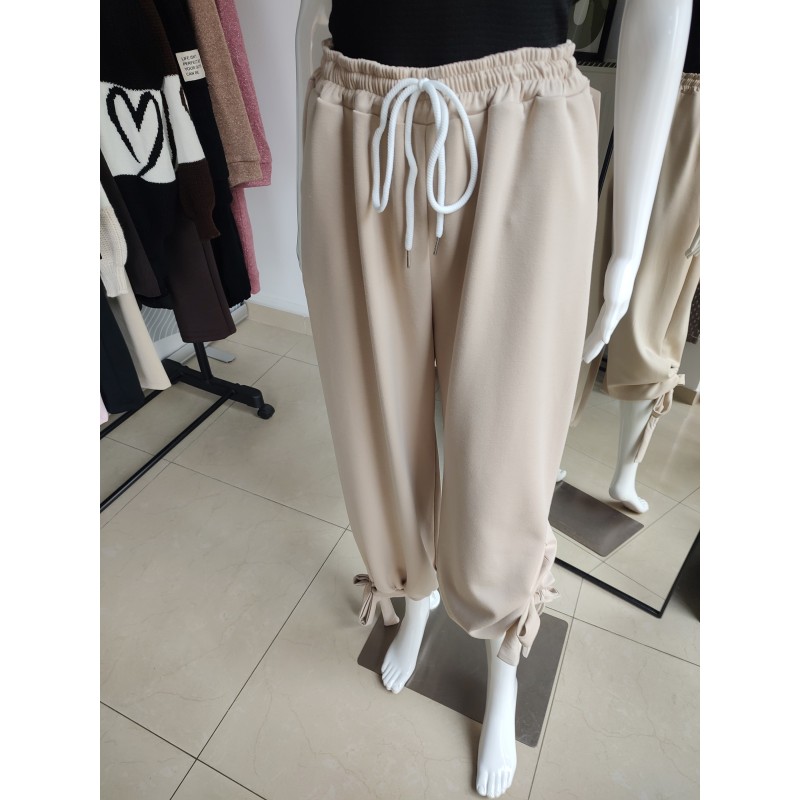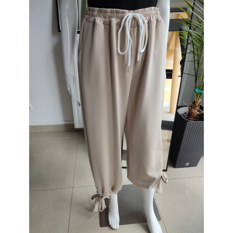 - Viscose material Loose-fit trousers Wide leg with adjustable ties Wide elastic waistband with drawstring Two slip pockets