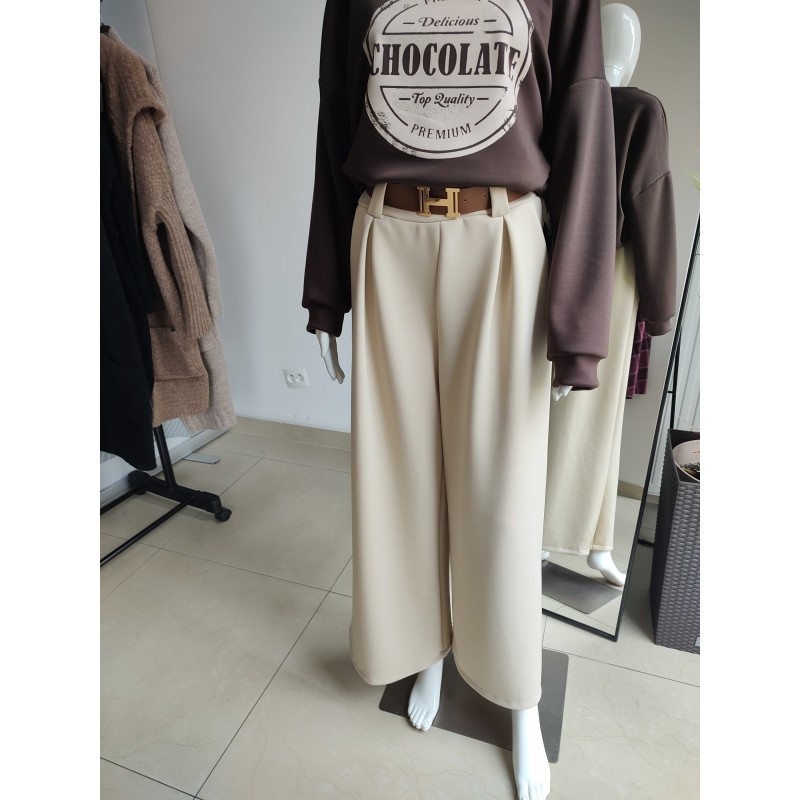 Butter-like, wide-leg trousers with a belt - beige