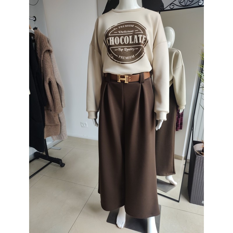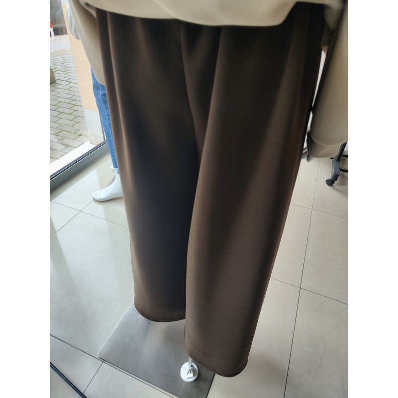 Butter-like, wide-leg trousers with a belt - chocolate brown