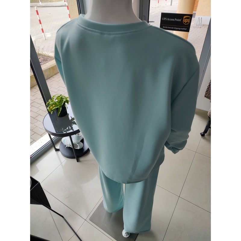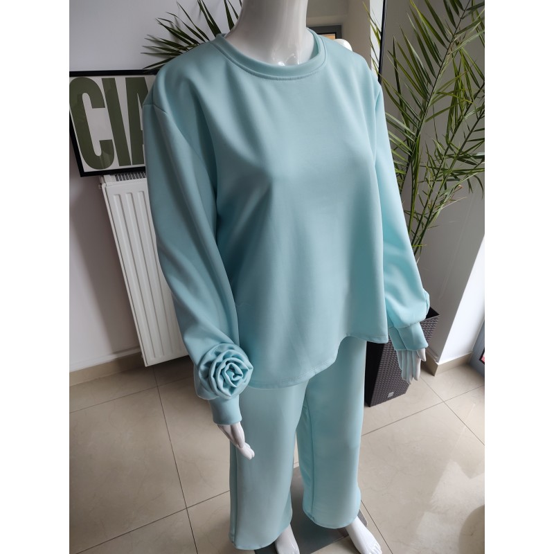 - Viscose fabric, so-called butter-print Loose-fit sweatshirt Round neckline Rib-knit cuffs, straight hem Feather-print on the sleeves Loose-fit trousers with wide legs Elastic waistband and drawstring Two slip pockets