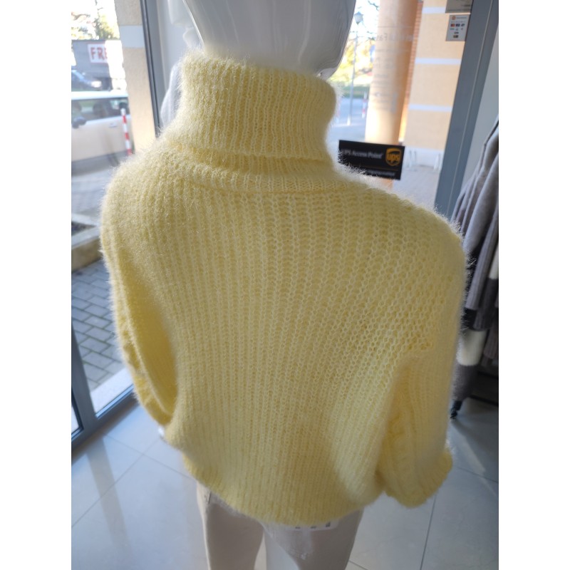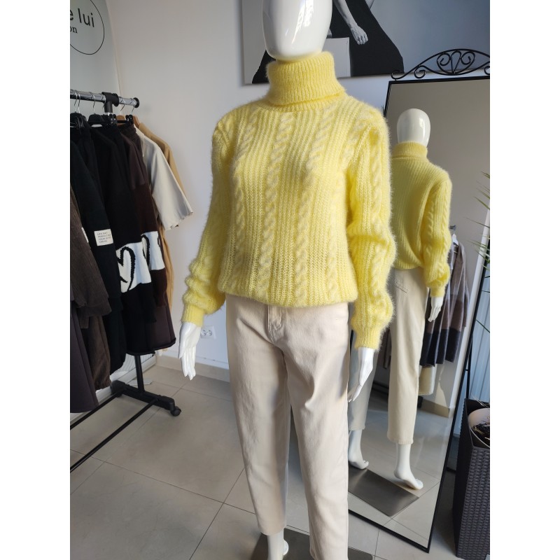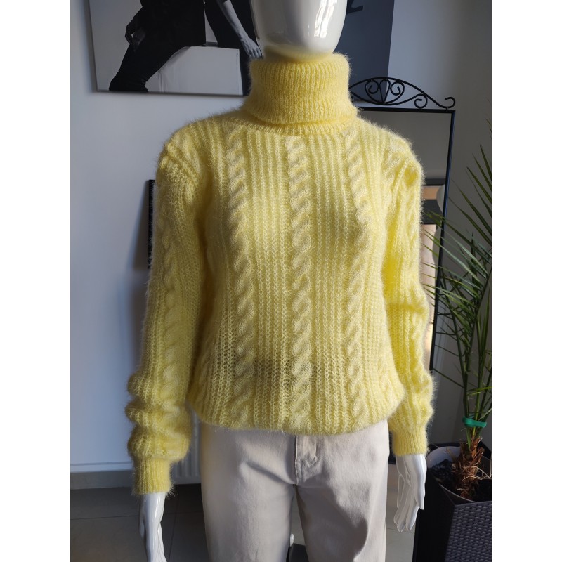 Moherowy golf z warkoczowym splotem - bananowy  Moherowy golf z warkoczowym splotem - bananowy  Moherowy golf z warkoczowym splotem - bananowy