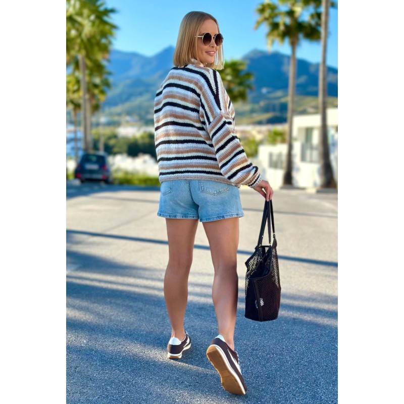 Kurze, leichte Oversize-Strickjacke mit Streifen - beige/ecru