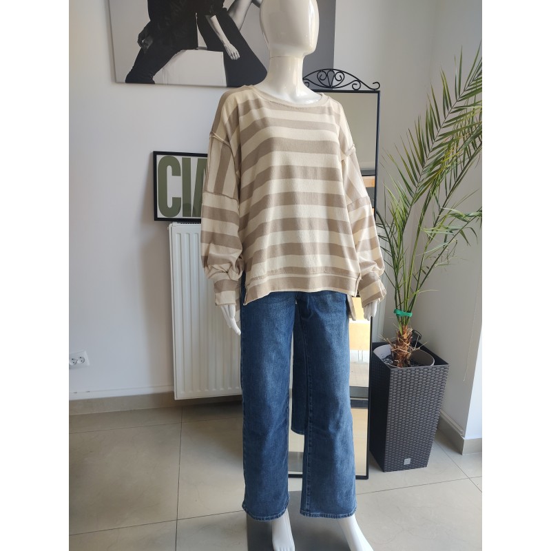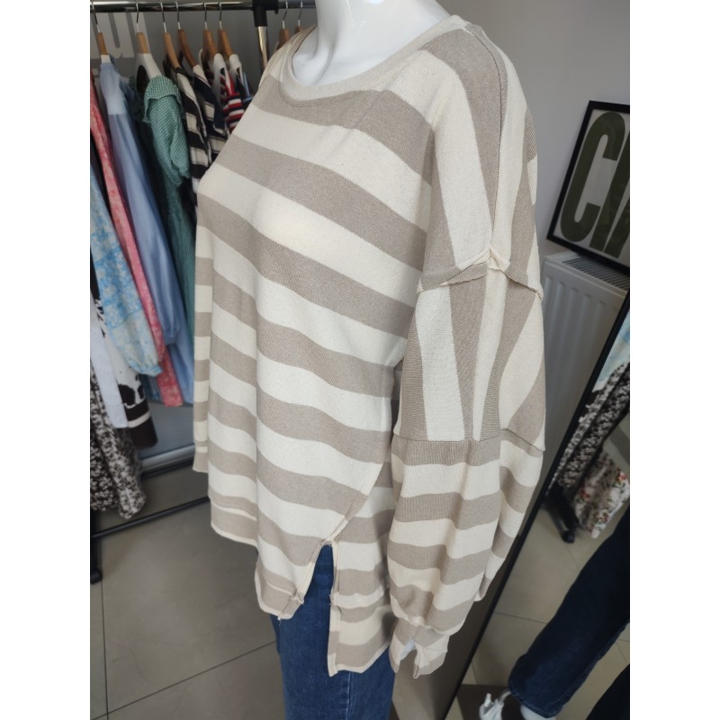 Bluza a'la ponczo w beżowe paski - ecru  Bluza a'la ponczo w beżowe paski - ecru  Bluza a'la ponczo w beżowe paski - ecru  Bluza a'la ponczo w beżowe paski - ecru