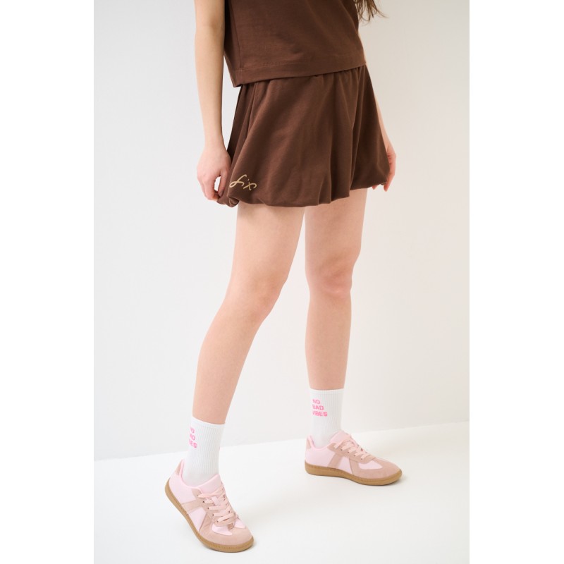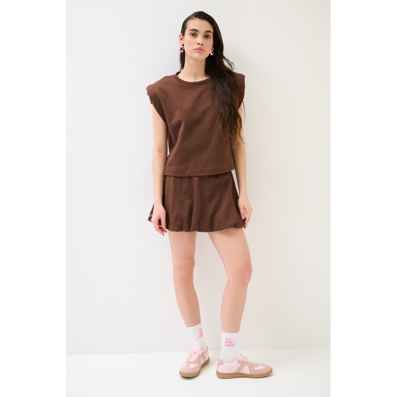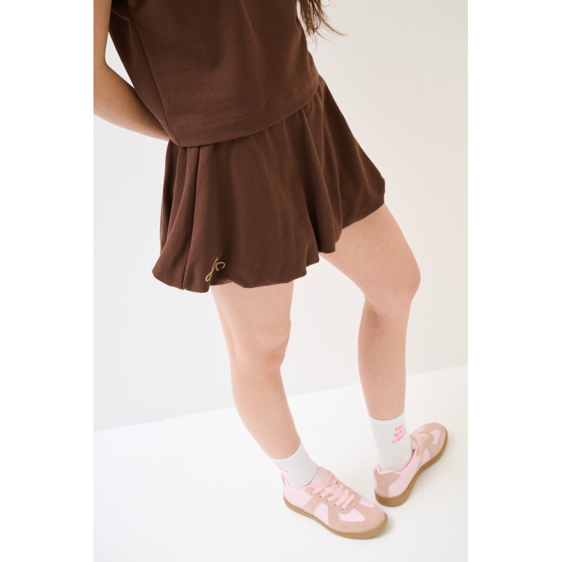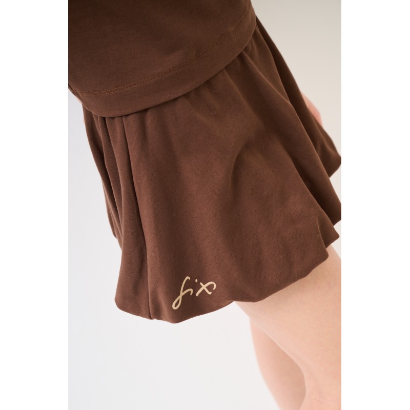 Dresowy komplet z balonową spódniczką mini - czekoladowy