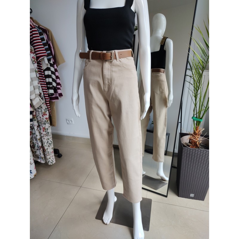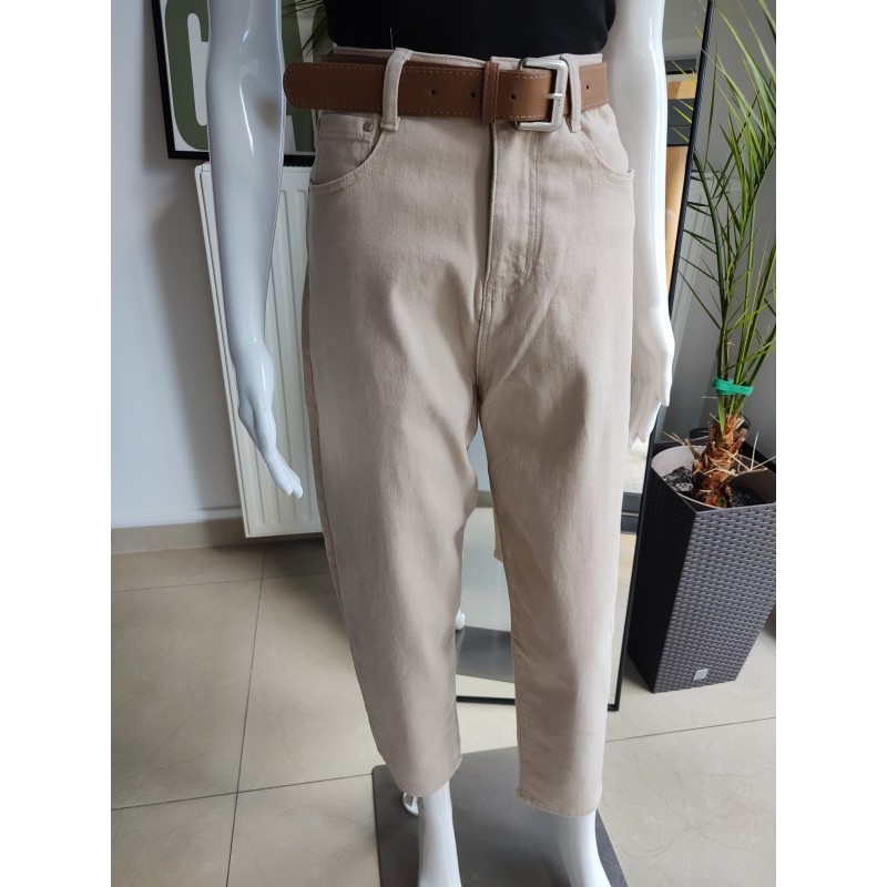 Jeansowe spodnie Balloon fit - beżowy