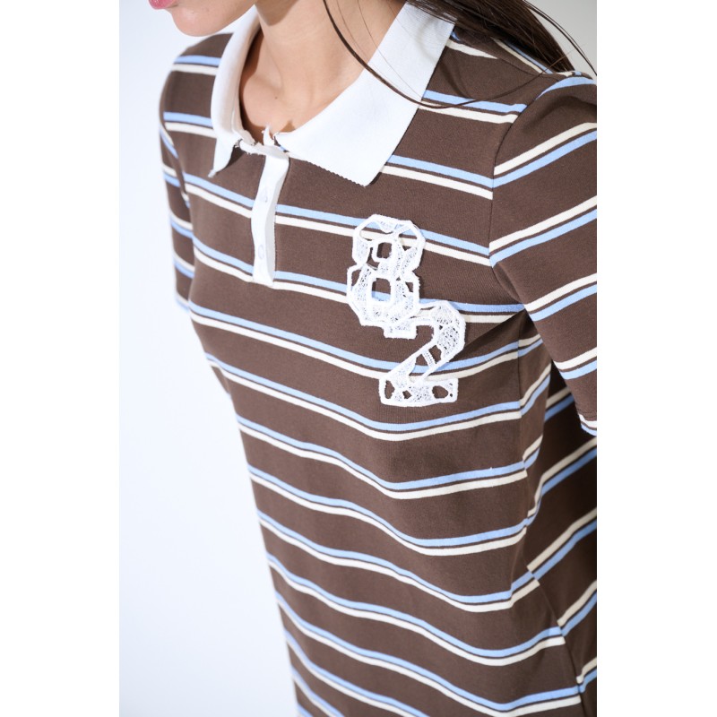 Sukienka polo w paski - czekoladowy