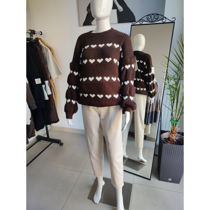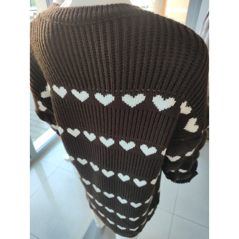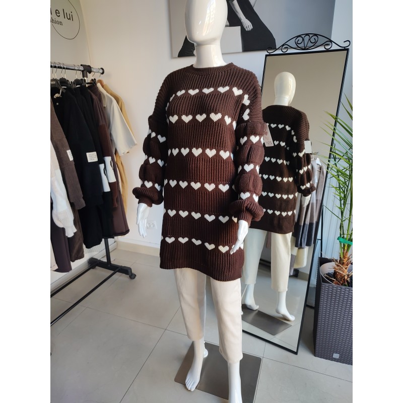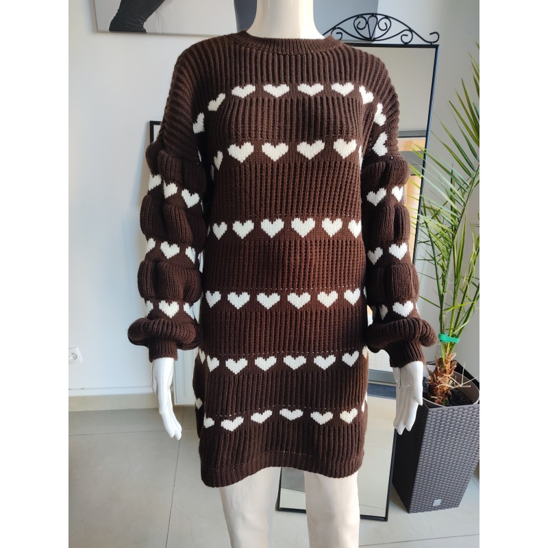 Sukienka, sweter z bufiastymi rękawami - czekoladowy