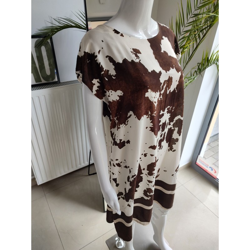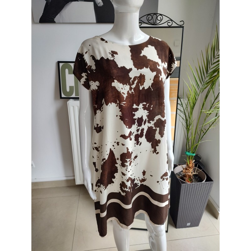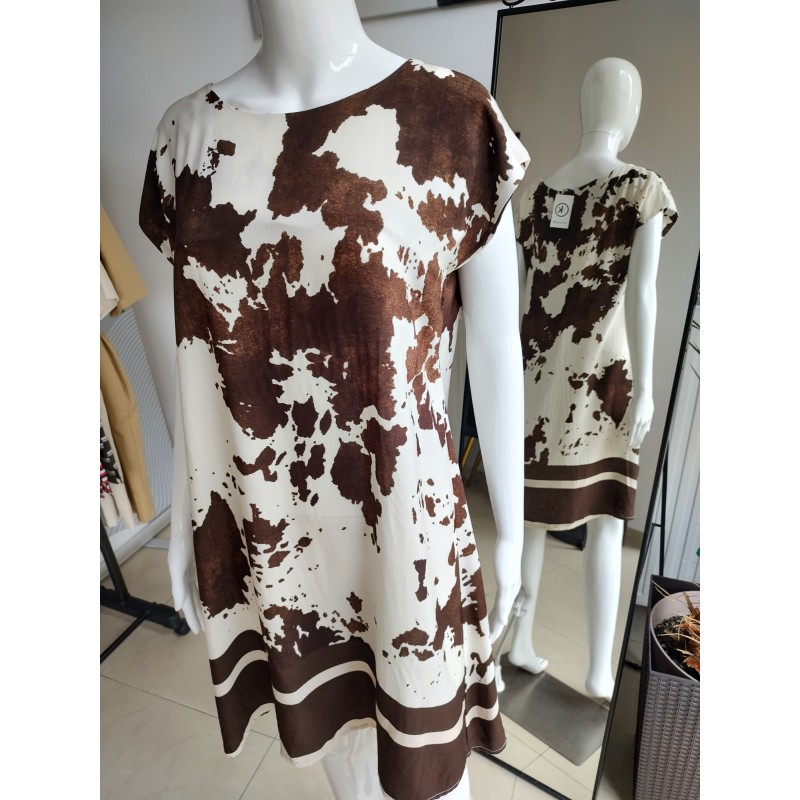 Wiskozowa sukienka "Krówka" - kremowo-brązowy