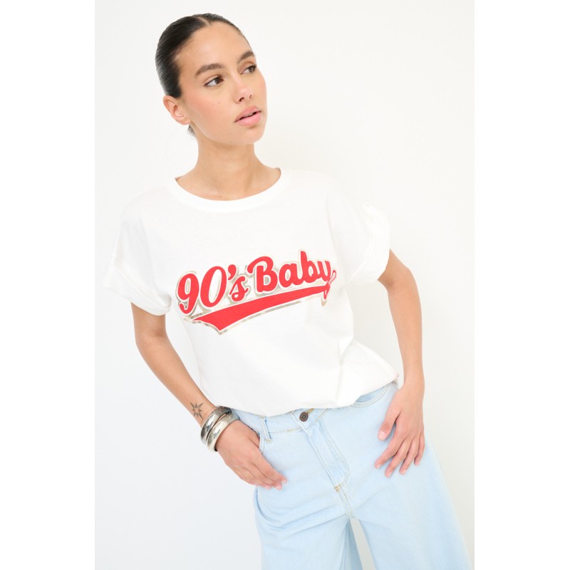 Bawełniana koszulka "90's Baby" - biały  Bawełniana koszulka "90's Baby" - biały