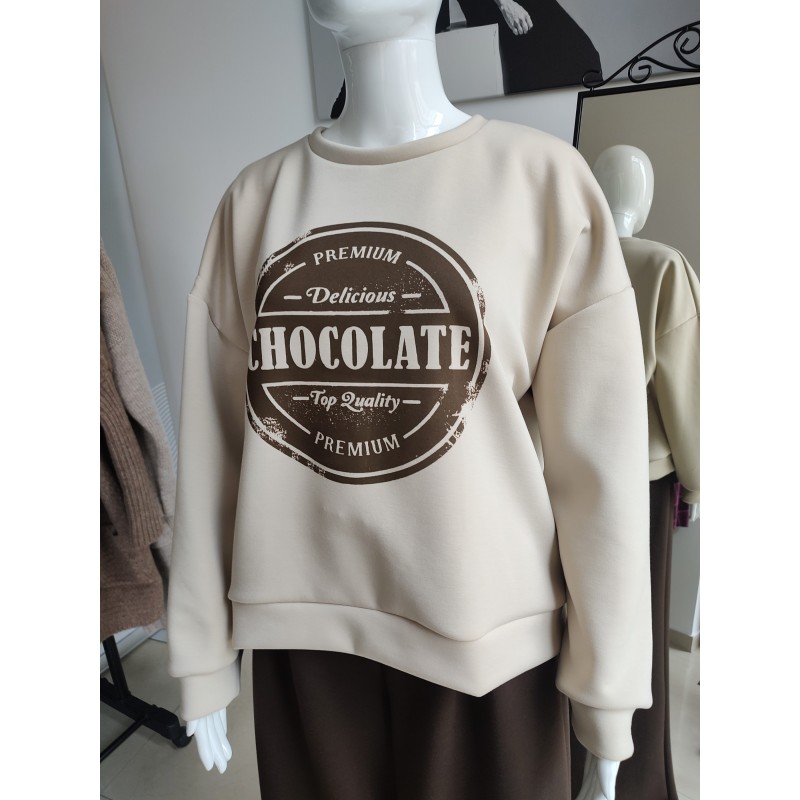 - Viskosestoff, auch Butter genannt Locker geschnittenes Sweatshirt Rundhalsausschnitt Lange, gerade Ärmel Rippstricksaum Großer, strapazierfähiger CHOCOLATE-Schriftzug auf der Vorderseite
