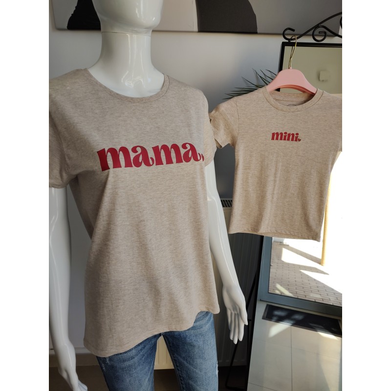 Mutter-Tochter-T-Shirt-Set Mama & Mini - beige