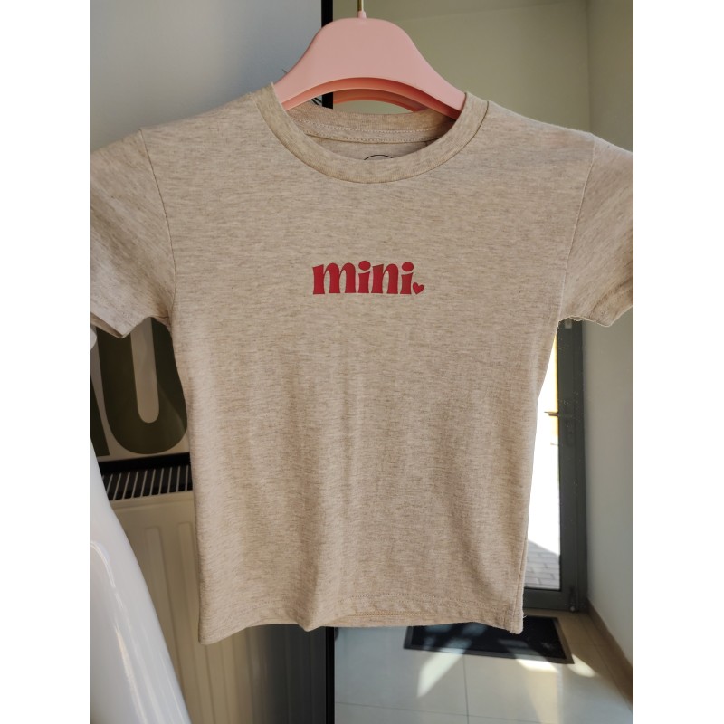 - das Kinder-T-Shirt mit einer Aufschrift "mini" und einem kleinen Herz, schlichte Rückseite