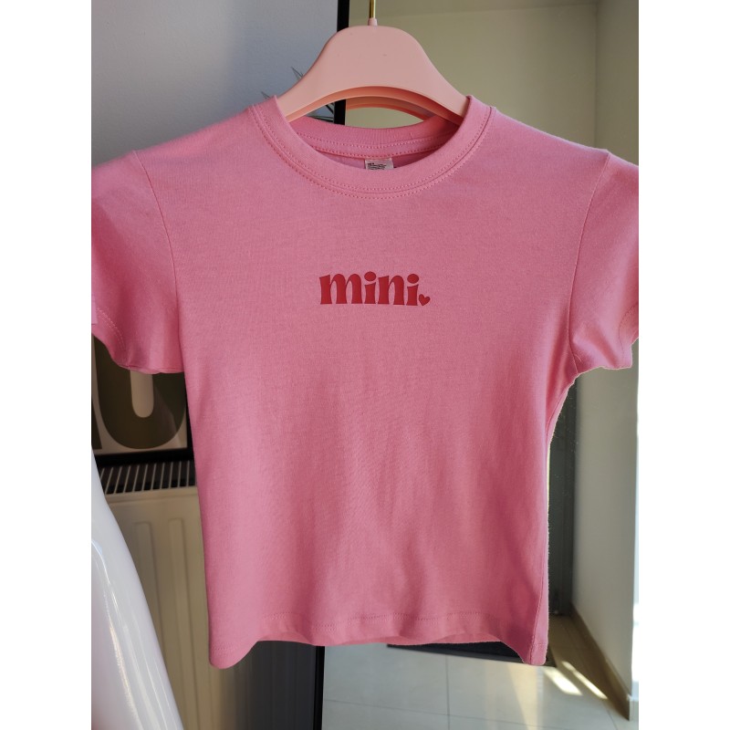 - das Kinder-T-Shirt mit einer Aufschrift "mini" und einem kleinen Herz, schlichte Rückseite