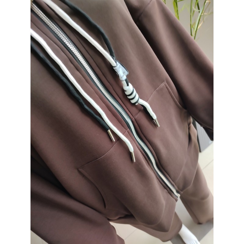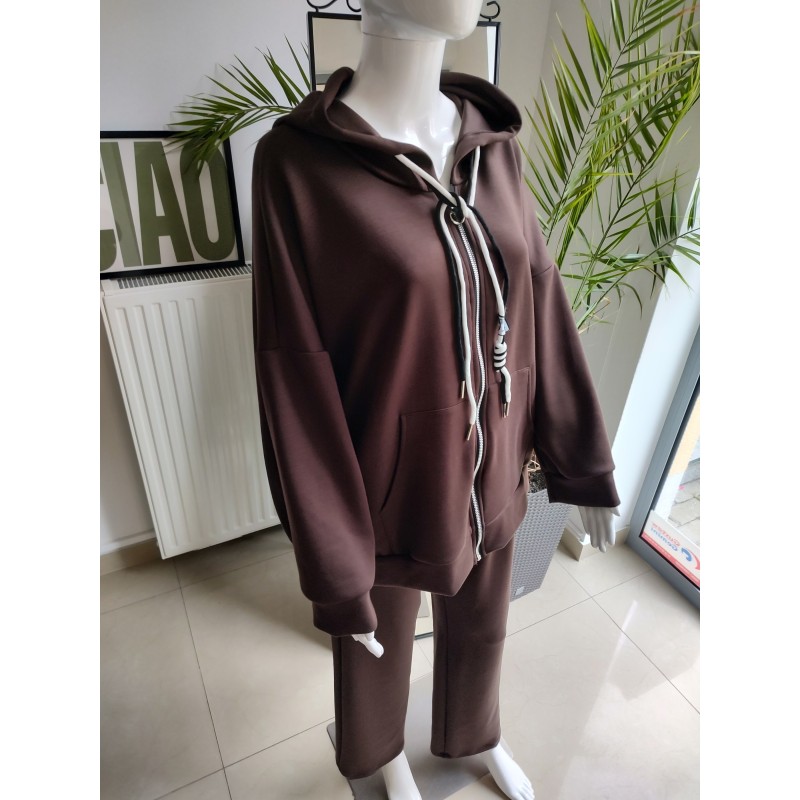 Oversize-Trainingsanzug mit Kapuze in Butteroptik – schokoladenbraun