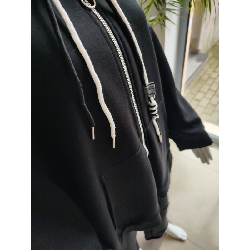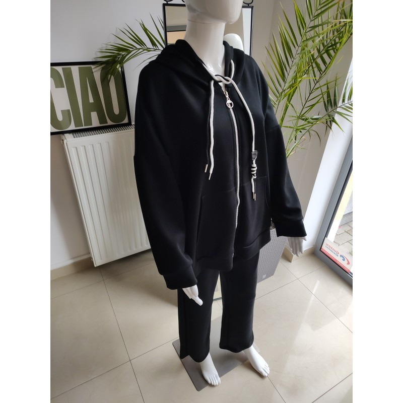 Oversize-Trainingsanzug mit Kapuze in Butteroptik – Schwarz