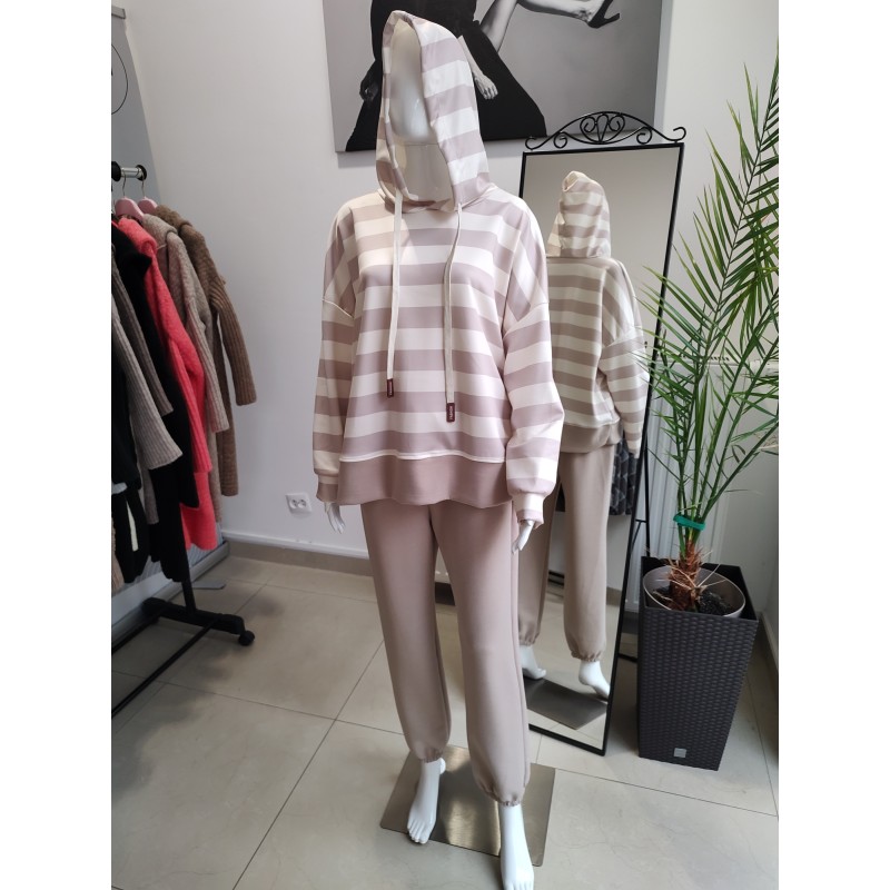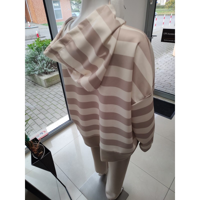 Oversized Trainingsanzug aus butterweichem Viskosestoff mit Kapuze – beige Streifen