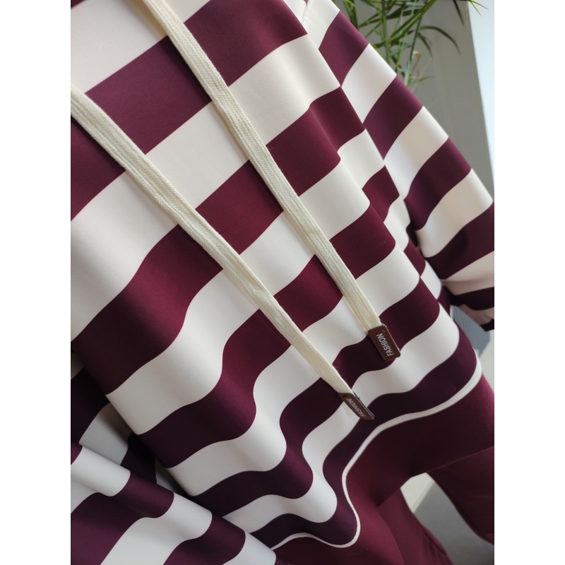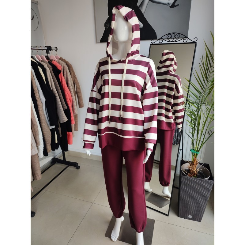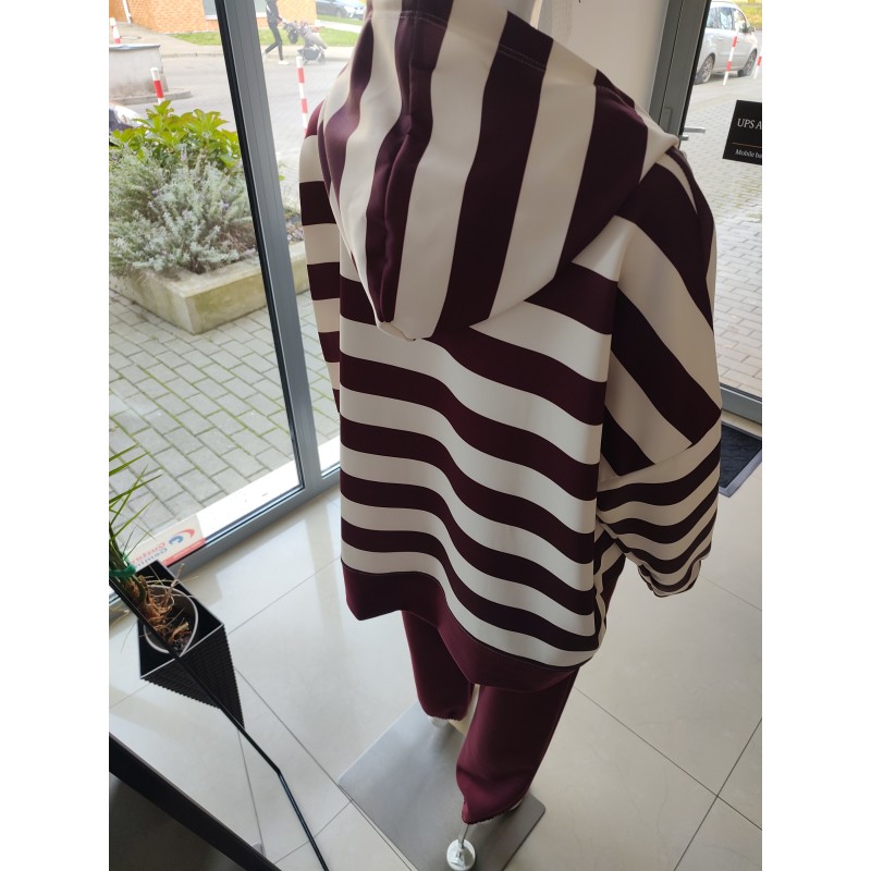 Oversized Trainingsanzug aus butterweichem Viskosestoff mit Kapuze – Kirsche Streifen