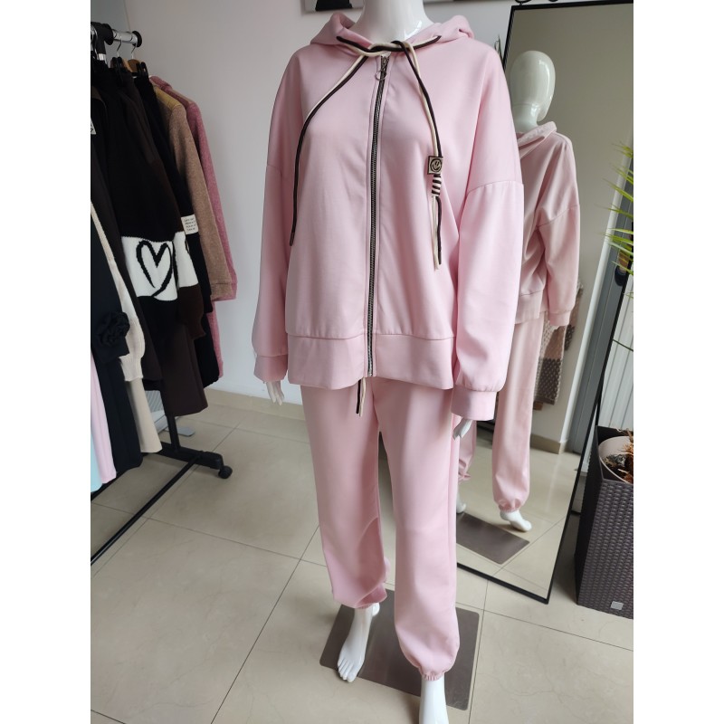 Oversized Trainingsanzug aus weichem Viskosestoff mit Kapuze – Rosa